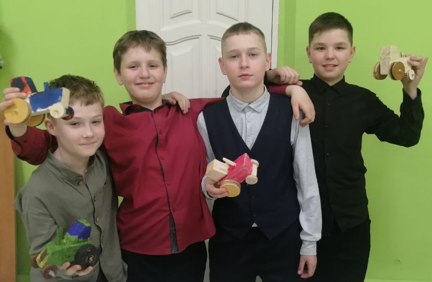 Среди мальчиков 5 класса прошли соревнования "Синий трактор" на лучшую поделку и проверку ходовых качеств. На уроках труда и кружке "Домовенок" ребята своими руками сконструировали трактор. В ходе соревнований оценивалось соответствие чертежу, качество выполненной модели, дальность движения по инерции. Победителем стал Никонов Дмитрий, второе место поделили Смородин Егор и Середин Семен, на третьем месте - Помазов Егор.